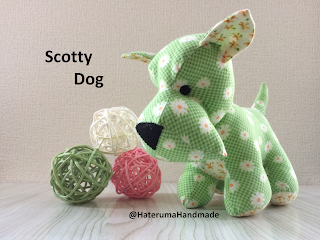 After my first son was born, I felt some kind of maternal sewing compulsion. I wanted to make him soft toys but I wasn't satisfied with patterns I was finding online. I decided to sit down with my pencil and design my first 3D soft toy. I figured every boy should have a dog (despite him later adopting a cat rag doll as his most favorite thing in the world) and I wanted it to have interesting dimension. I wanted to be able to make it with fun cotton fabric prints, and I wanted it to be simple enough to reproduce efficiently to maybe sell later. Whether you spell it Scotty or Scottie, you can't argue that he's adorable.